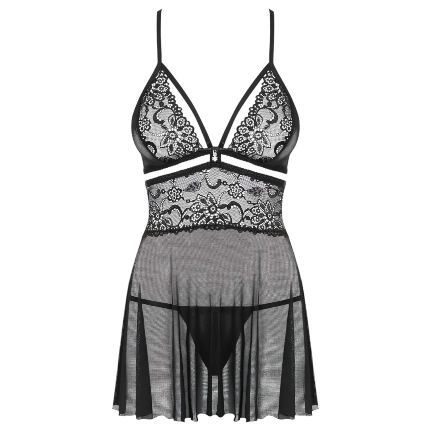 Obsessive 838-BAB-1 - set babydoll trasparente in pizzo (nero) - L/XL